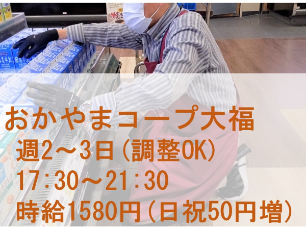 | 就業場所 | 岡山県岡山市南区大福おかやまコープ コープ大福 |